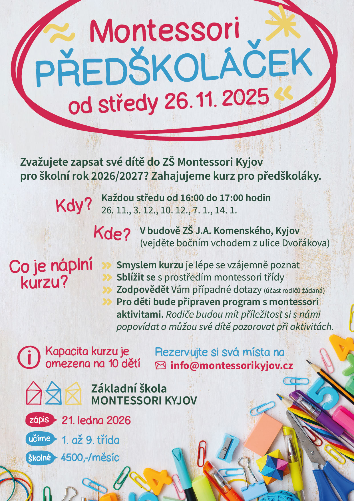 Počet účastníků je omezen – rezervujte si místo předem na info@montessorikyjov.cz